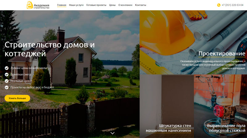 Разработка сайта для строительной компании Академия строительства. Компания занимается малоэтажным строительством, проектированием и отделкой в Челябинске и области.