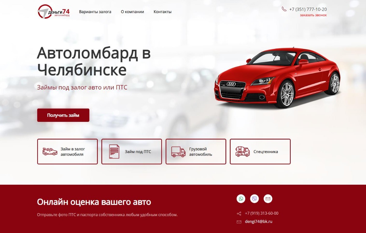 Разработка сайта визитки для автоломбарда Деньги74.