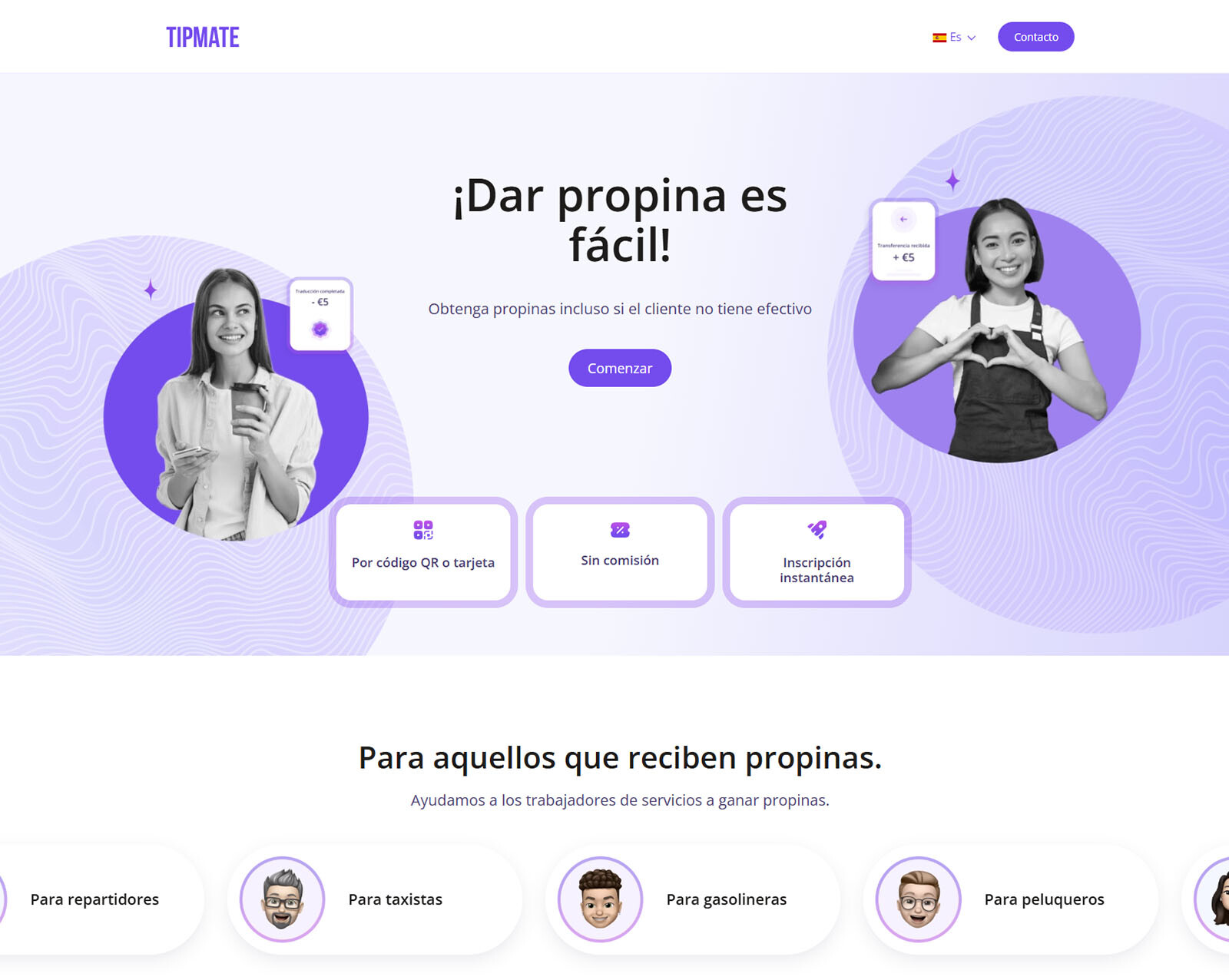 Промо-сайт для сервиса по приёму чаевых. Доступен на двух языках: испанском и английском.