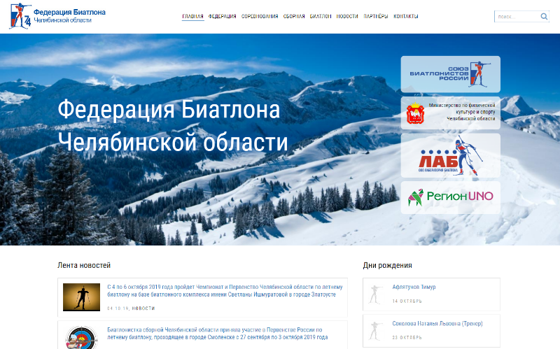 Создание сайта для региональной спортивной общественной организации "Федерация биатлона Челябинской области" (ФБЧО).