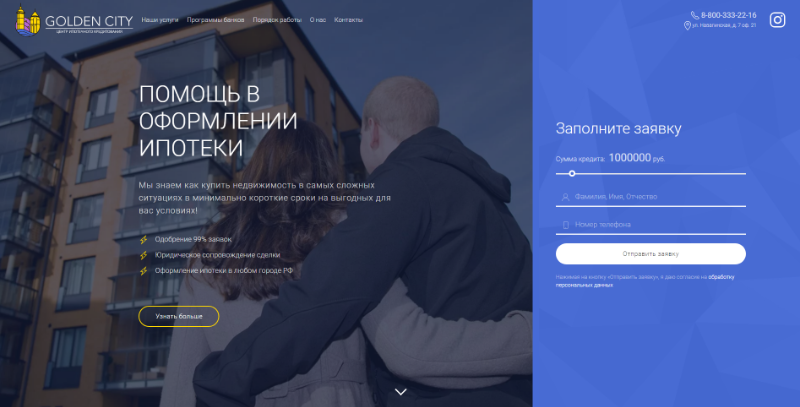 Разработка Landing Page для Центра ипотечного кредитования Golden City (г. Сочи).