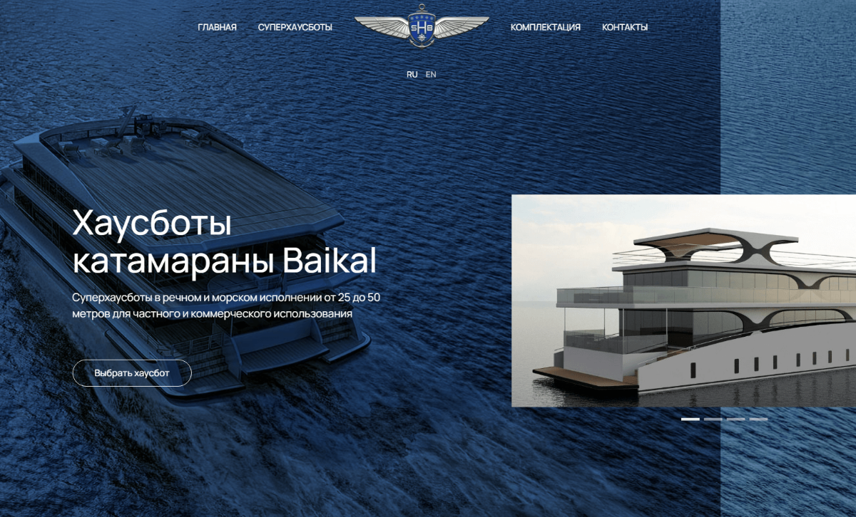 Создание сайта на двух языках (русская и английская версии) для производителя хаусботов-катамаранов Baikal Yachts Group.