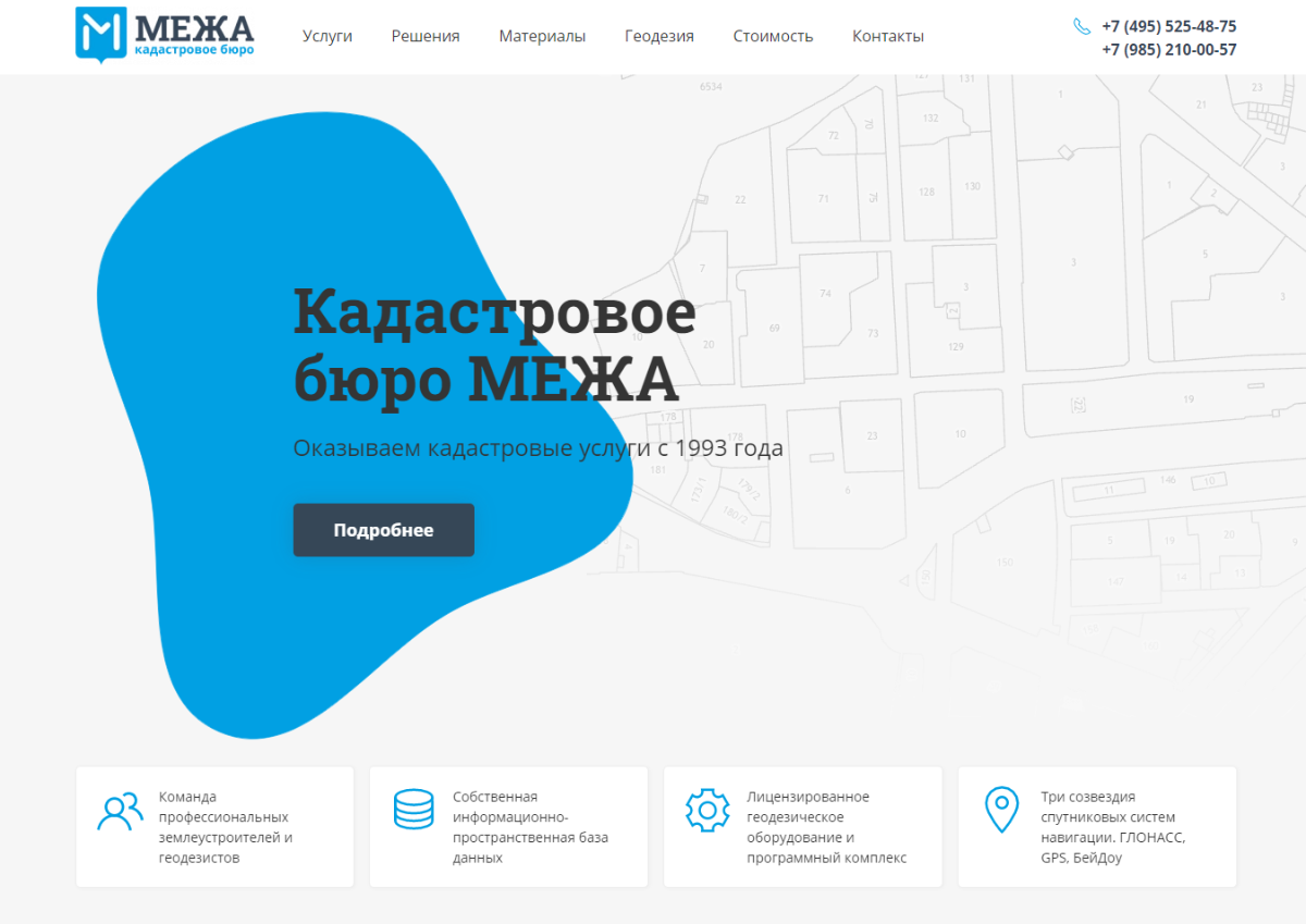 Разработка корпоративного сайта для кадастрового бюро МЕЖА, город Балашиха - кадастровые услуги.