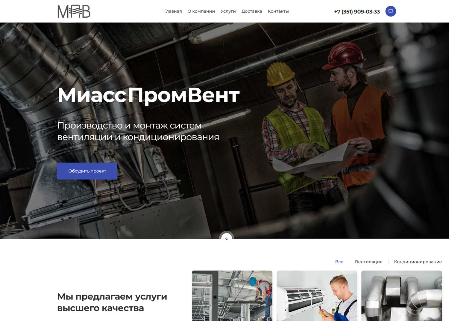 Создание сайта для компании, занимающейся производством, монтажом и обслуживанием систем вентиляции и кондиционирования.