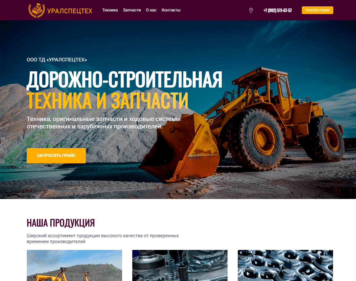 Разработка небольшого сайта-визитки для компании поставщика дорожно-строительной техники, оригинальных запасных частей и ходовых систем отечественных и зарубежных производителей.