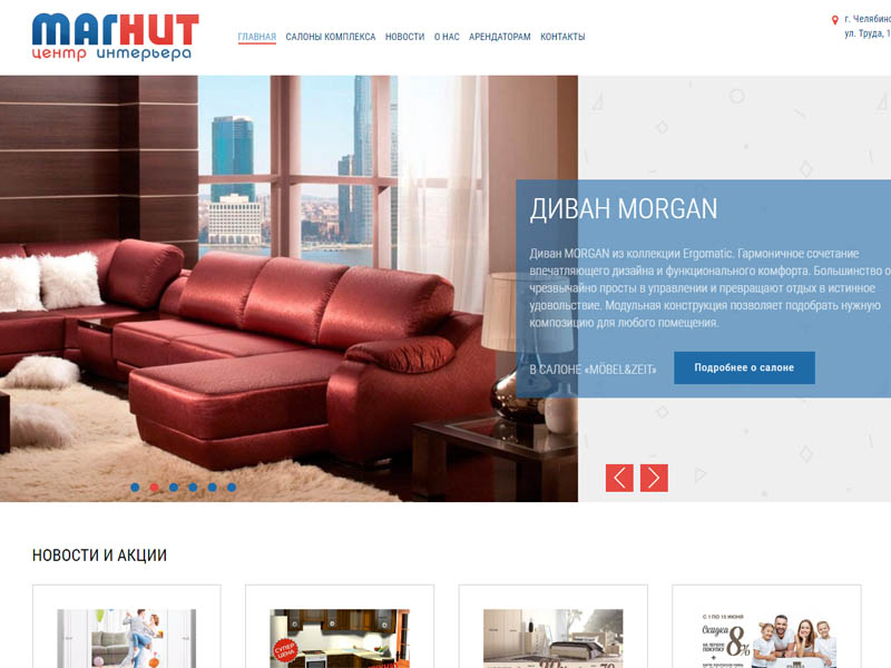 Создание сайта для мебельного центра Магнит в Челябинске с каталогом арендаторов и лентой новостей арендаторов.