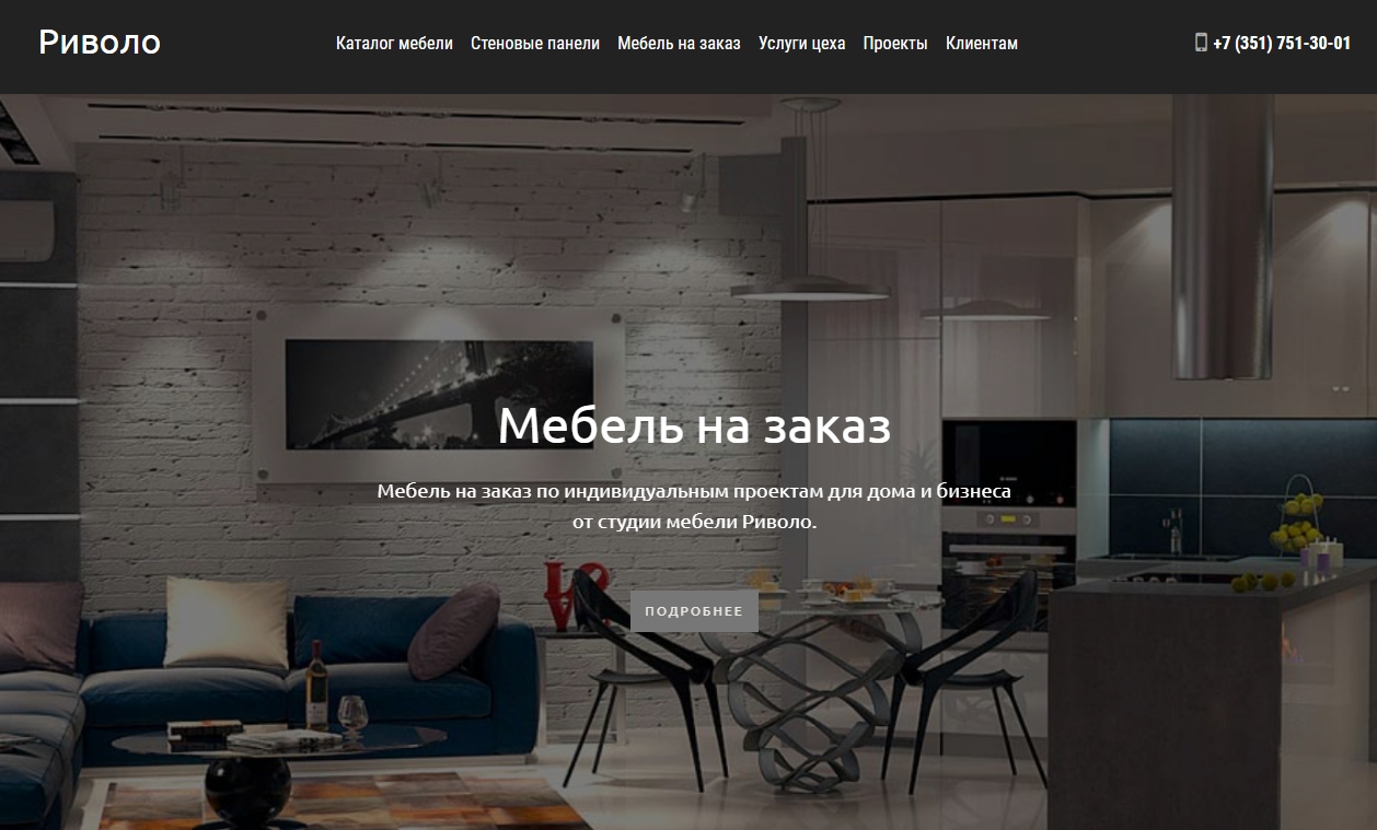 Разработка сайта для производителя мебели на заказ по индивидуальным проектам для дома и бизнеса от студии мебели Риволо.