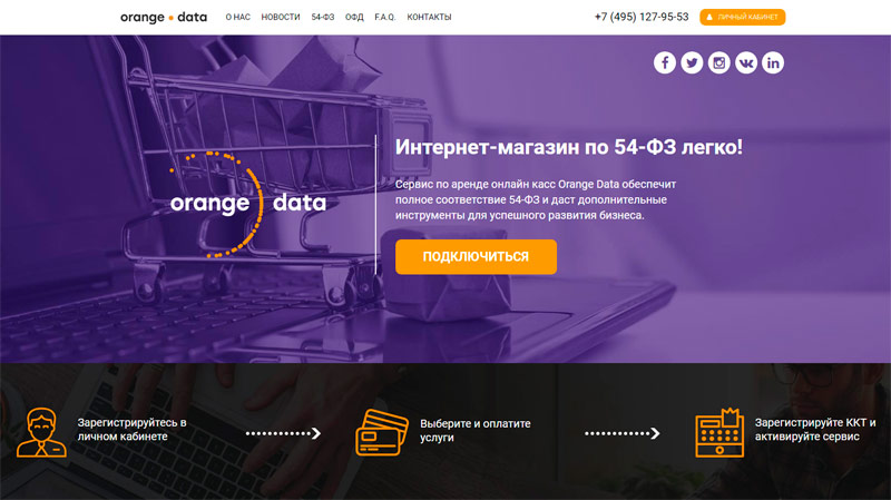 Orange Data — облачные кассы для всех отраслей онлайн-торговли: интернет-магазины, вендинг, доставка, ЖКХ, такси.