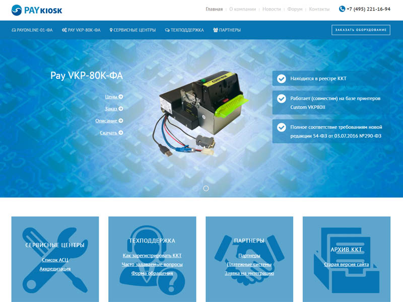 Разработка сайта для компании Пэй Киоск с функциями онлайн-заказа, продающий фискальные регистраторы для терминалов. Для продажи используется форма заказа оборудования с расчетом цены покупки.