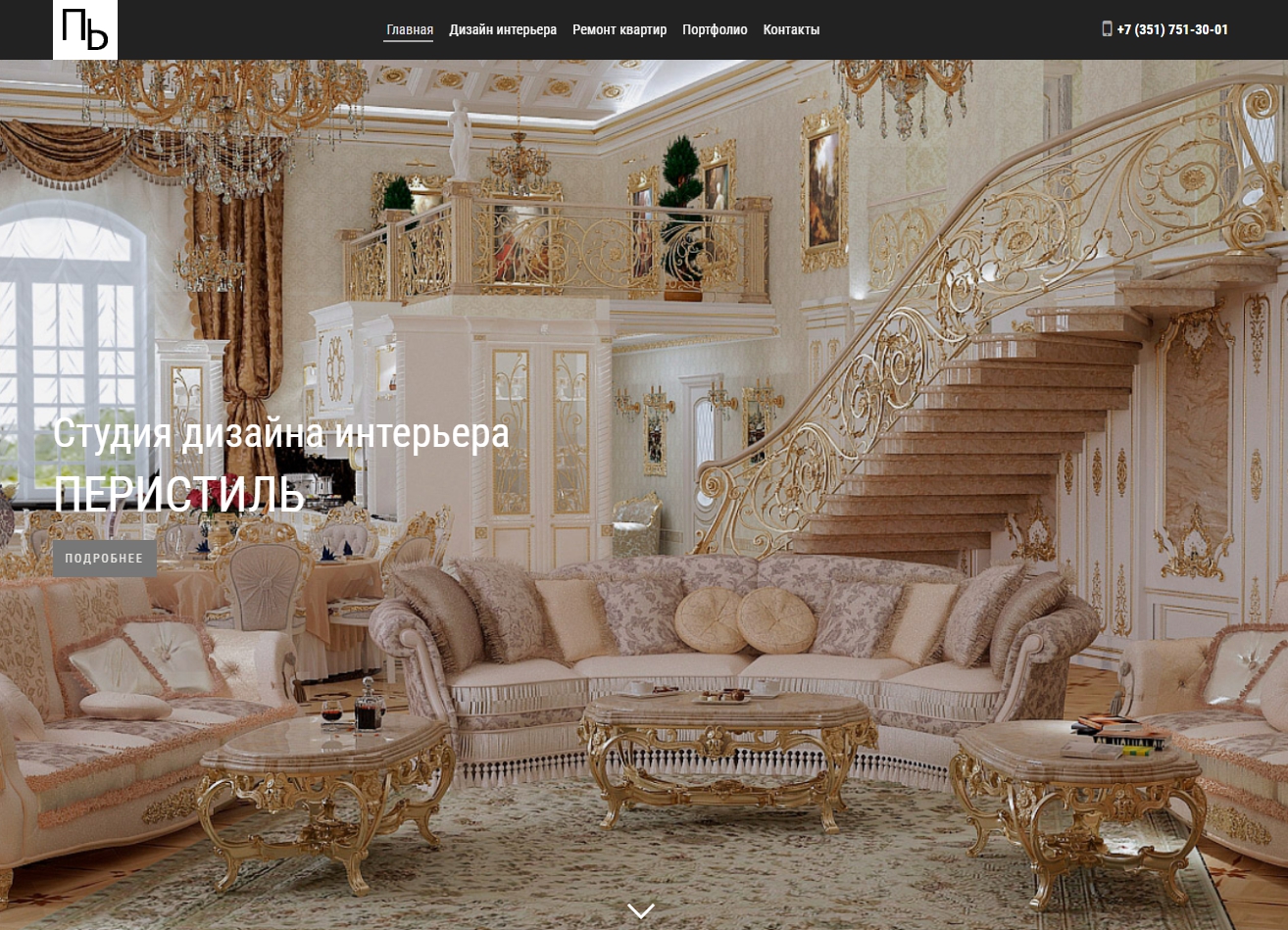 Создание сайта портфолио для студии дизайна интерьера Перистиль: разработка проектов квартир, домов, коттеджей, ресторанов, гостиниц, офисов.