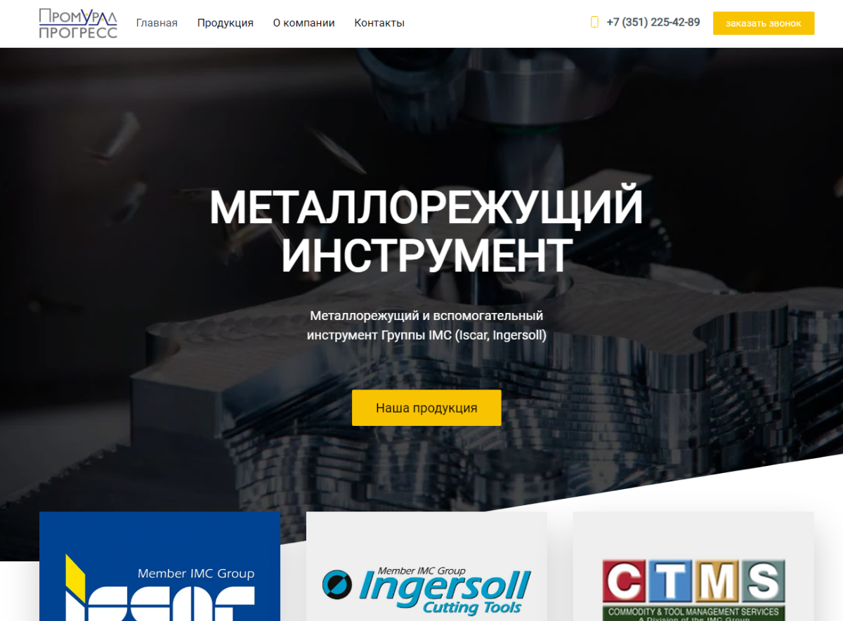 Разработка лендинга (одностраничного сайта) компании ПРОМУРАЛ Прогресс - металлорежущий и вспомогательный инструмент Группы IMC.