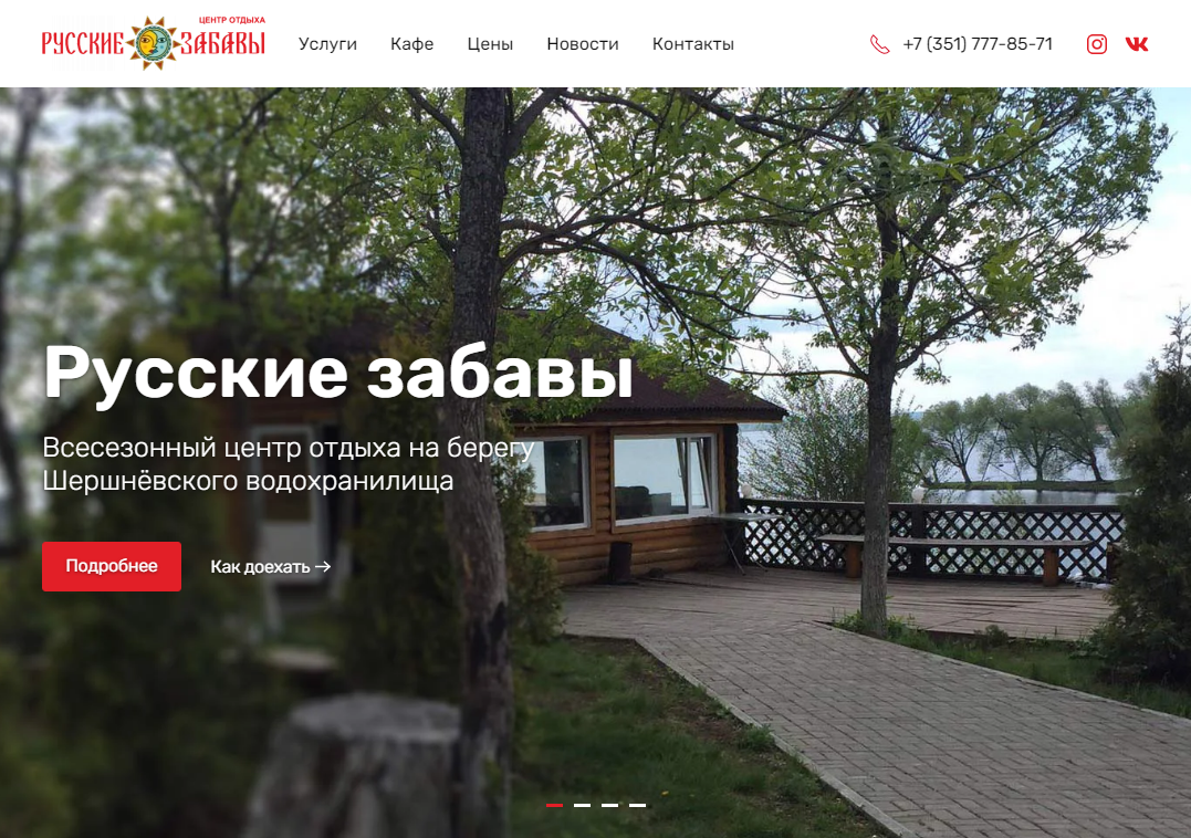 Разработка сайта для всесезонного центра отдыха на берегу Шершнёвского водохранилища - Русские Забавы.
