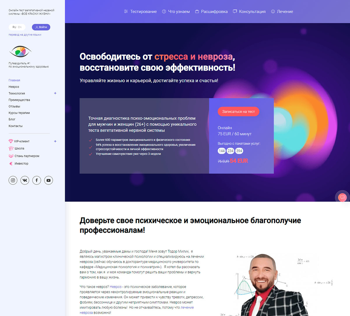 Разработка мультиязычного сайта: онлайн-тест вегетативной нервной системы «Все Краски Жизни».