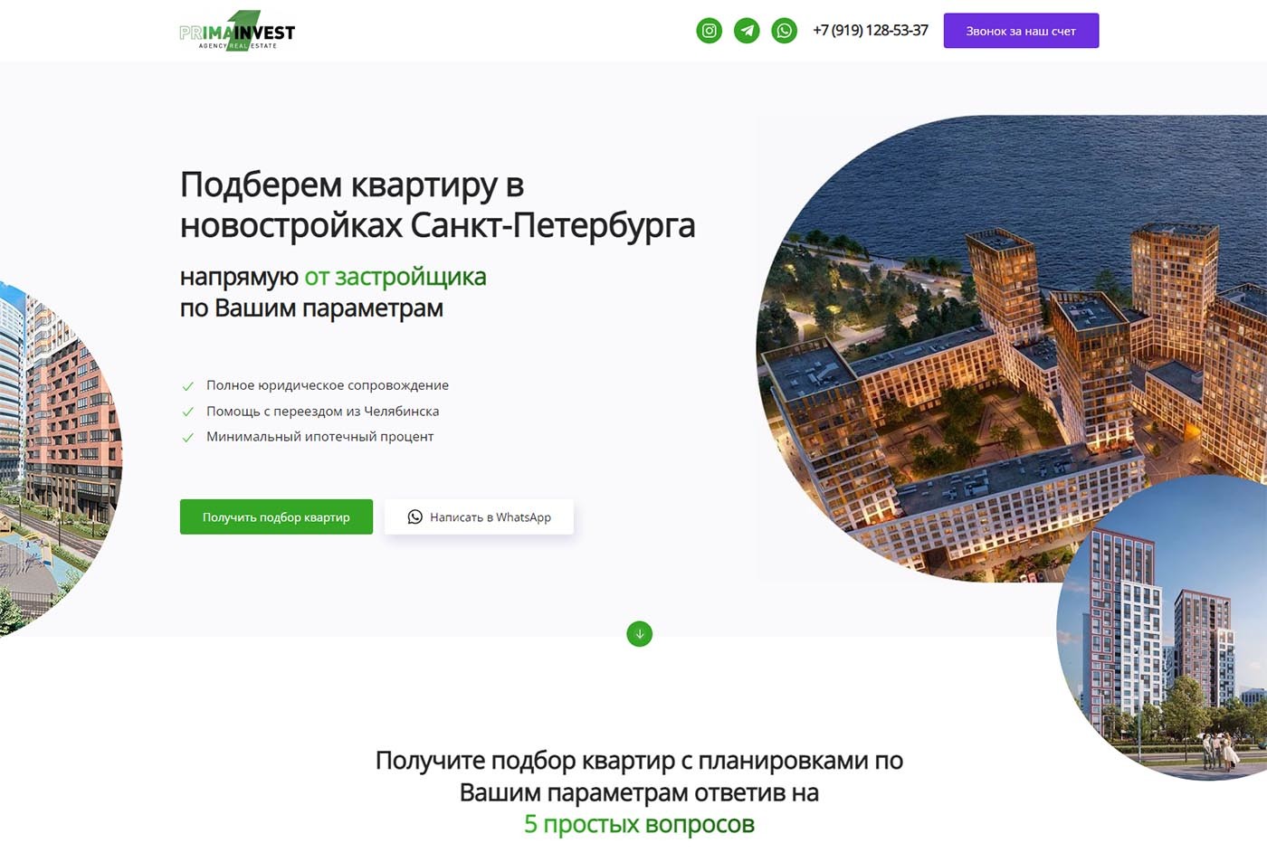 Разработка продающего сайта для агентства недвижимости, занимающегося новостройками Санкт-Петербурга.