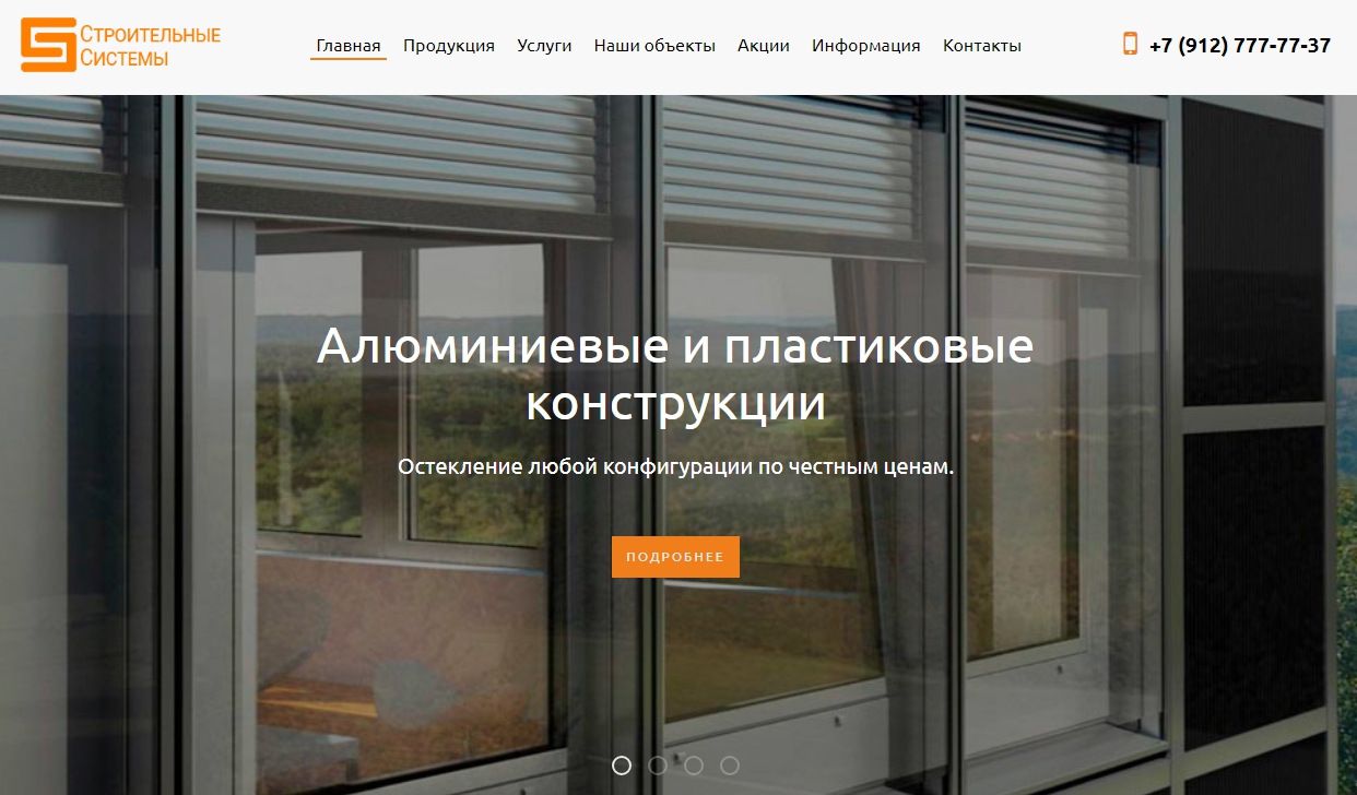 Создание сайта для строительной компании. Компания «Строительные Системы» производит конструкции и оказывает услуги в сфере строительных технологий: Автоматические ворота, пластиковые окна, рольставни, шлагбаумы.